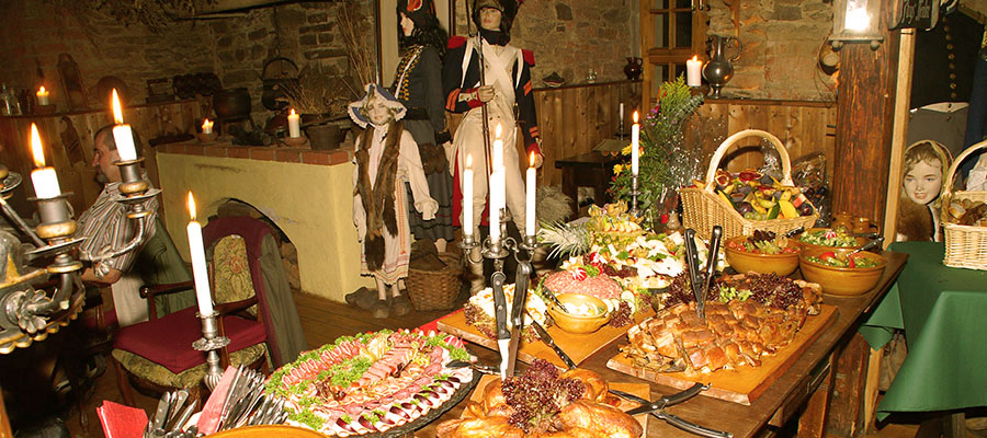 Tauchen Sie ein in die Zeit der Napoleonische Epoche und lassen Sie sich im Gastättenbereich von der altertümlichen Atmosphäre in eine andere Zeit verführen.